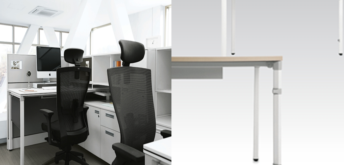 스틸 다리와 프레임에 사무가구 최초로 따뜻하고 정돈된 느낌을 주는 화이트 컬러를 적용했습니다.